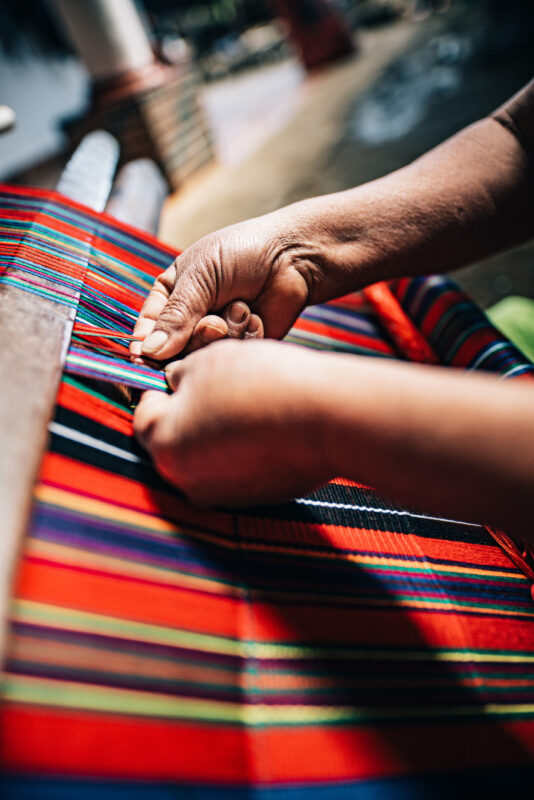 Margarita, now 61, grew up in La Pista, watching her mother weave güipiles—the traditional blouses worn by Indigenous women. Sitting at her mother’s side, Margarita learned each step of the intricate art, a skill that would later become her lifeline.